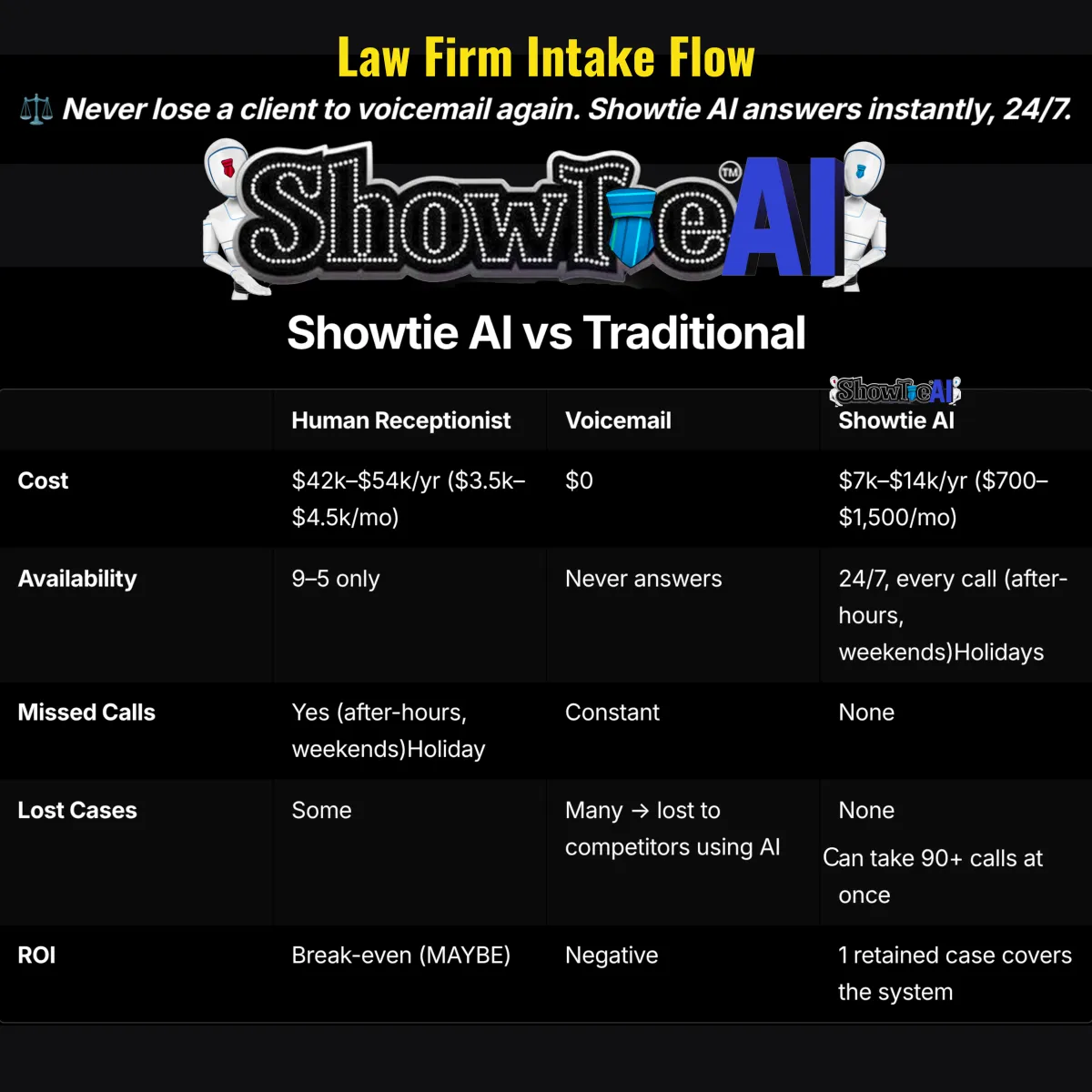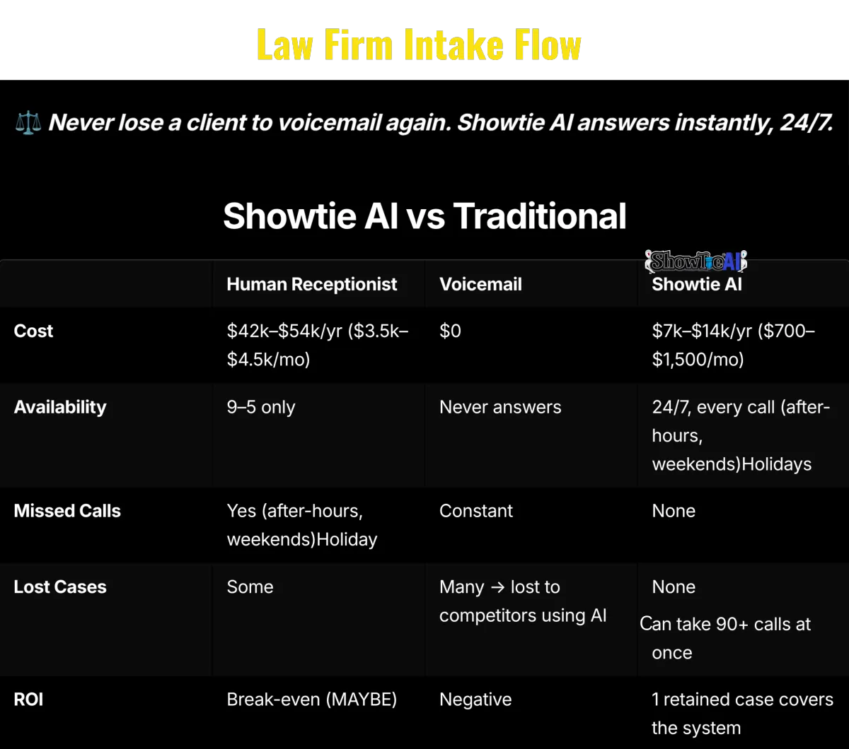 With ShowTie AI, every call is seamlessly turned into confirmed bookings, inquiries answered, and tasks completed. Whether it’s scheduling appointments or managing client questions, our assistants operates around the clock, making sure no opportunity slips through the cracks.